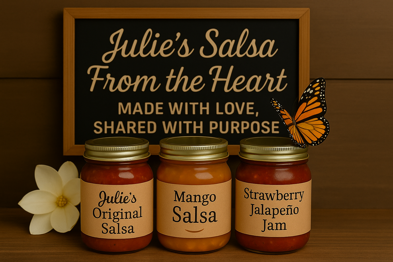 Welcome to Julie’s Salsa From the HeartHandcrafted with love, rooted in family tradition, and inspired by healing—each jar is a taste of something deeper. From sweet heat to fire bold, our salsas and jams are made fresh from the heart to your table.